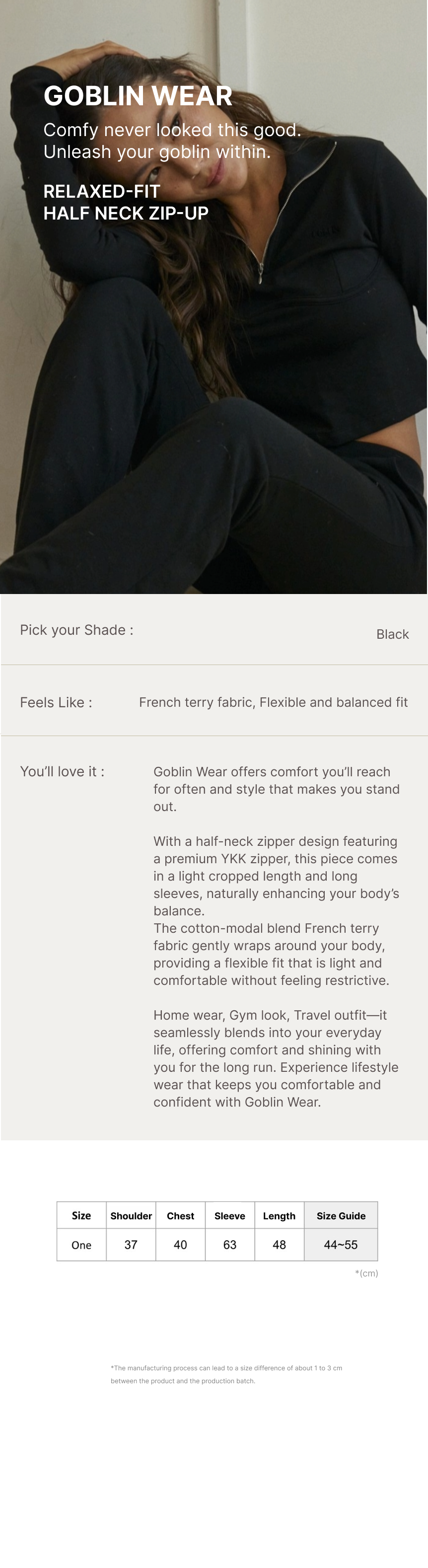 Relaxed-fit Half Neck Zip-up (Black)