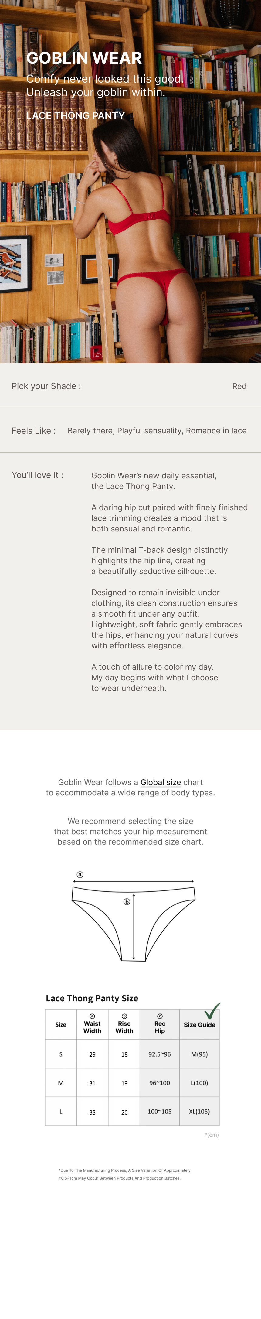 (4) For hygiene reasons, please wear underwear when trying on items. Returns showing signs of wear may be declined.