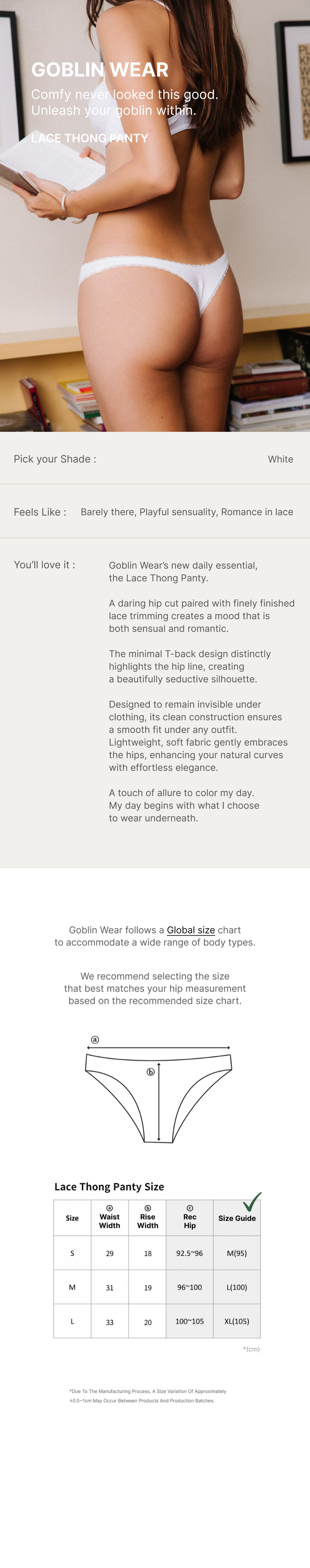 (4) For hygiene reasons, please wear underwear when trying on items. Returns showing signs of wear may be declined.
