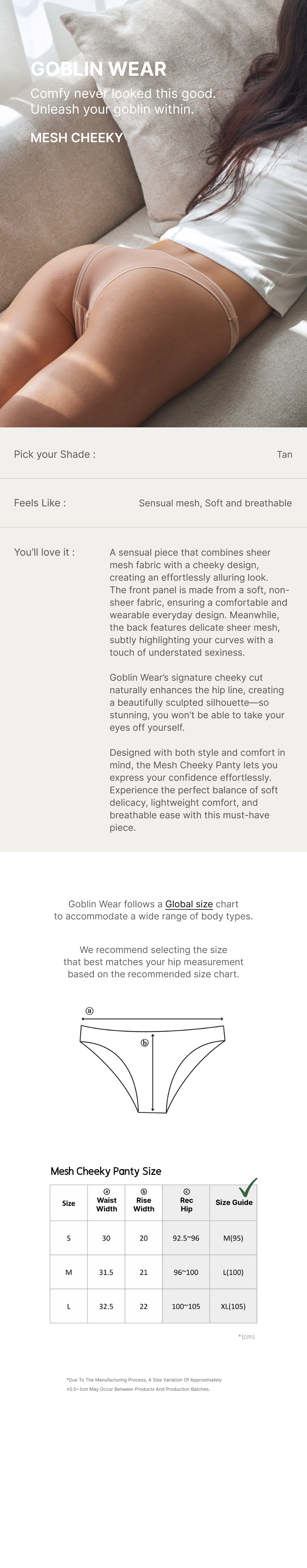 (4) For hygiene reasons, please wear underwear when trying on items. Returns showing signs of wear may be declined.