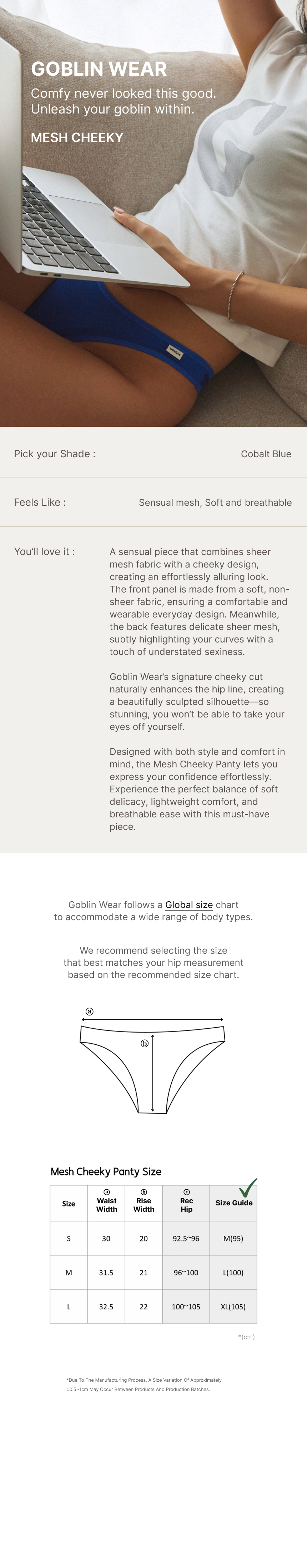 (4) For hygiene reasons, please wear underwear when trying on items. Returns showing signs of wear may be declined.
