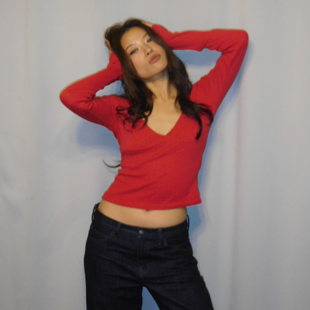 Cassie V Fitted Long Sleeves(Red)
