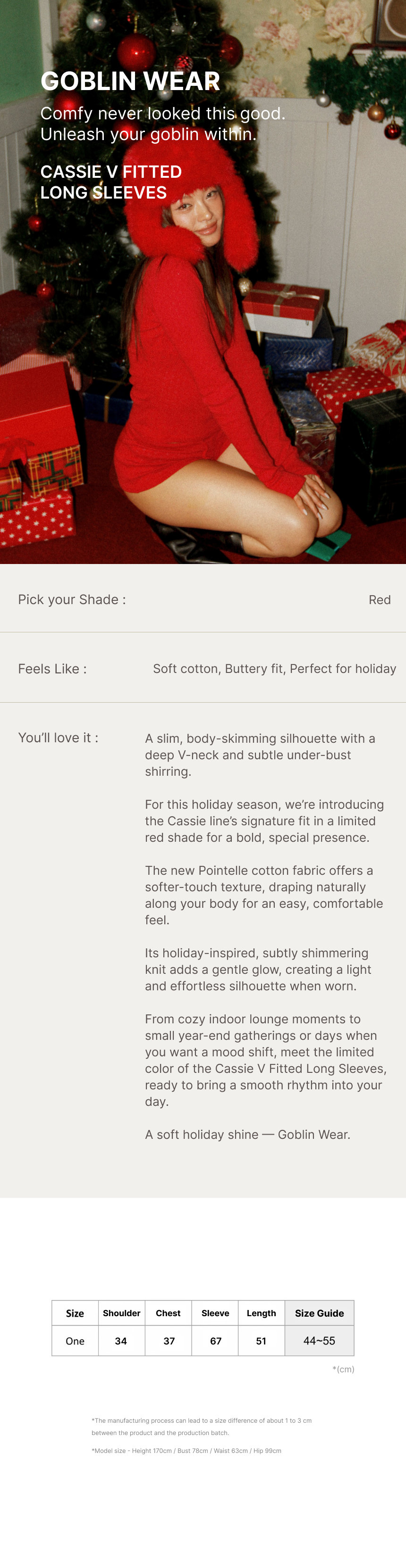 -Height 170 cm / Bust 78 cm / Waist 63 cm / Hips 99 cm